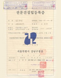 전문건설업등록증(철근콘크리트 공사업)